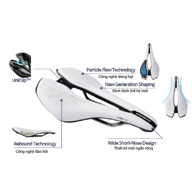 + Lớp bề mặt yên: Sợi MICROFIBER